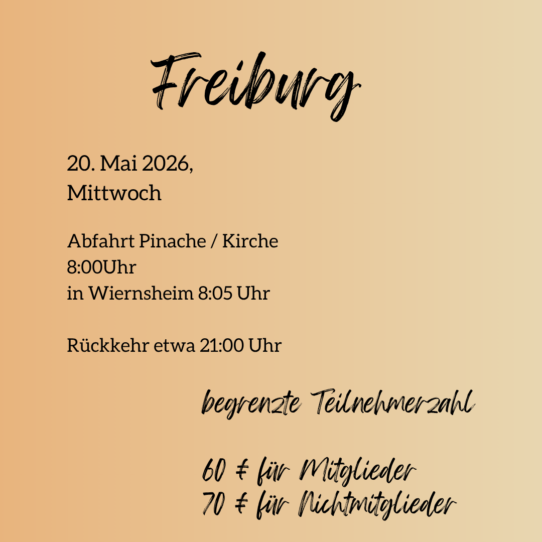 Abfahrt Pinache / Kirche um 8:00 Uhr, anschließend Wiernsheim.
